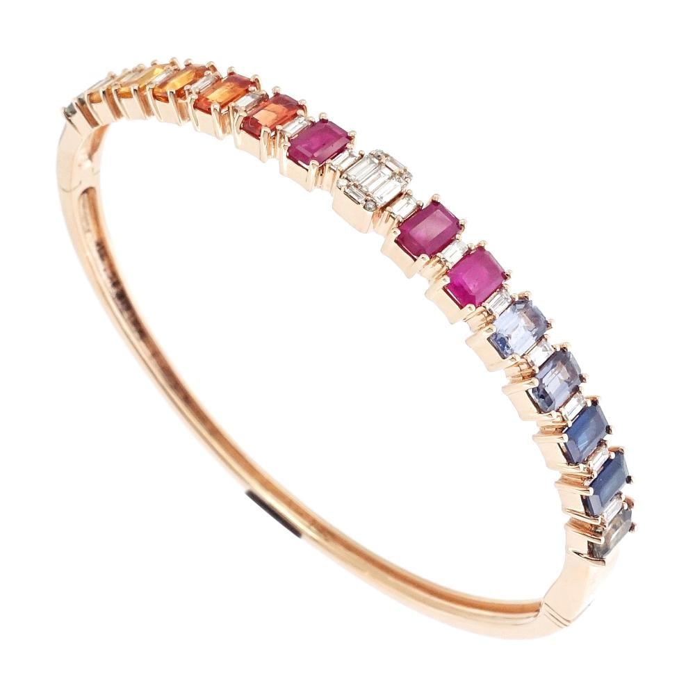 اسوارة ذهب عيار 18 مزينة بالأحجار الكريمة والألماس الأبيض