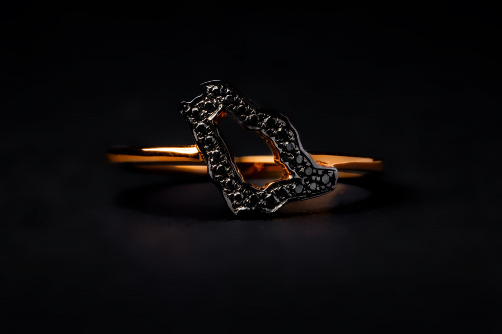 خاتم خريطة المملكة ذهب عيار 18 مرصع بلألماس الأسود