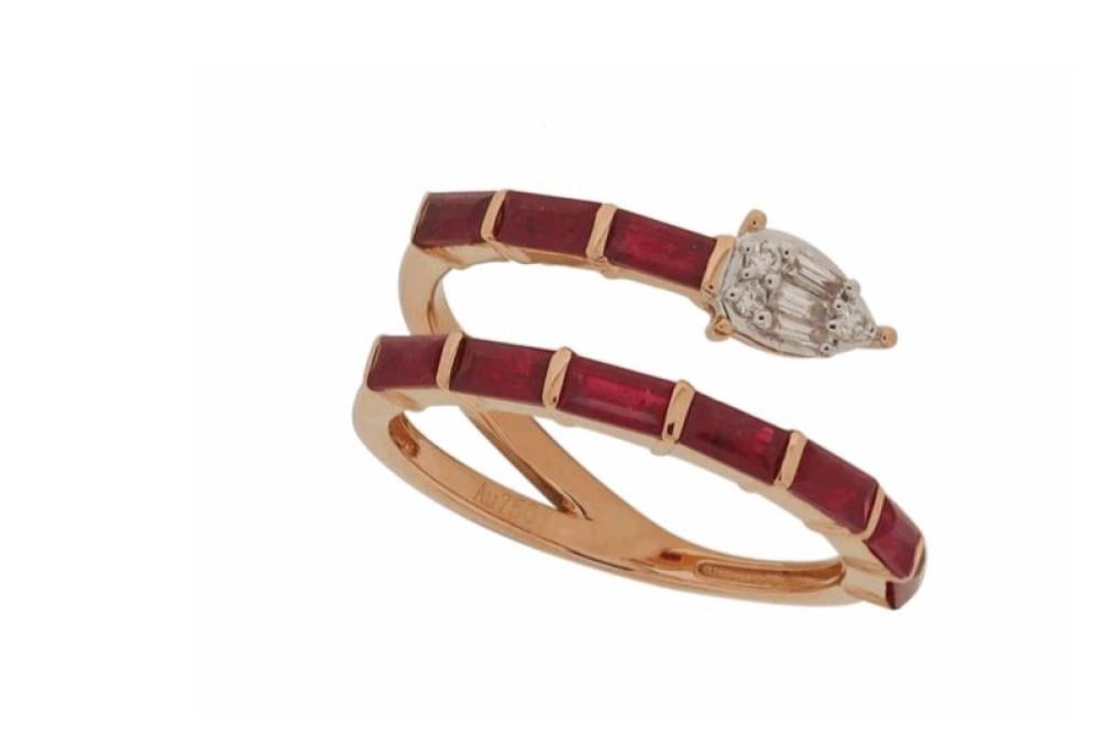 خاتم ذهب عيار 18 مزين بالالماس والاحجار الكريمة