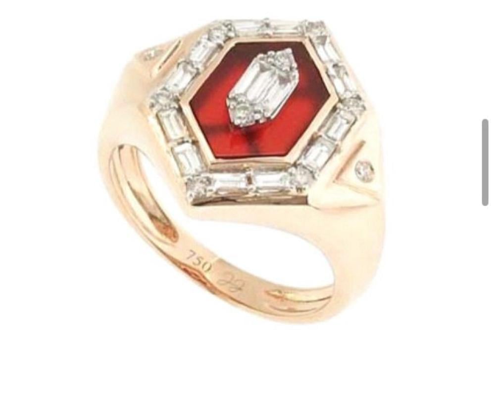 خاتم ذهب عيار 18 مزين بالالماس والاحجار الكريمة