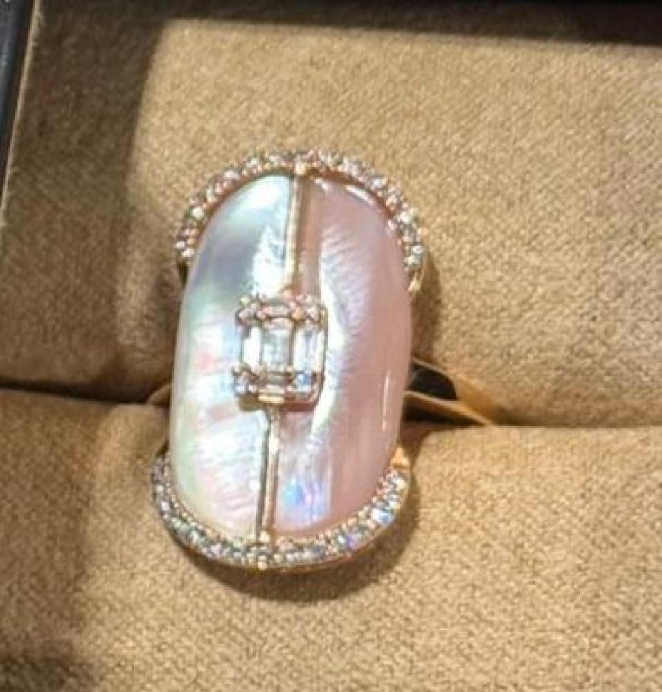 خاتم ذهب عيار 18 مزين بالالماس والاحجار الكريمه الوزن. 3.607g