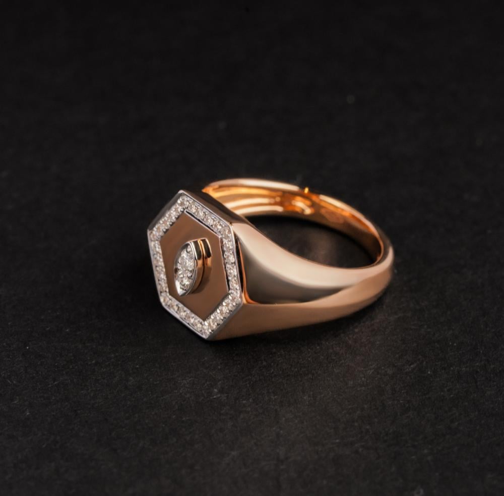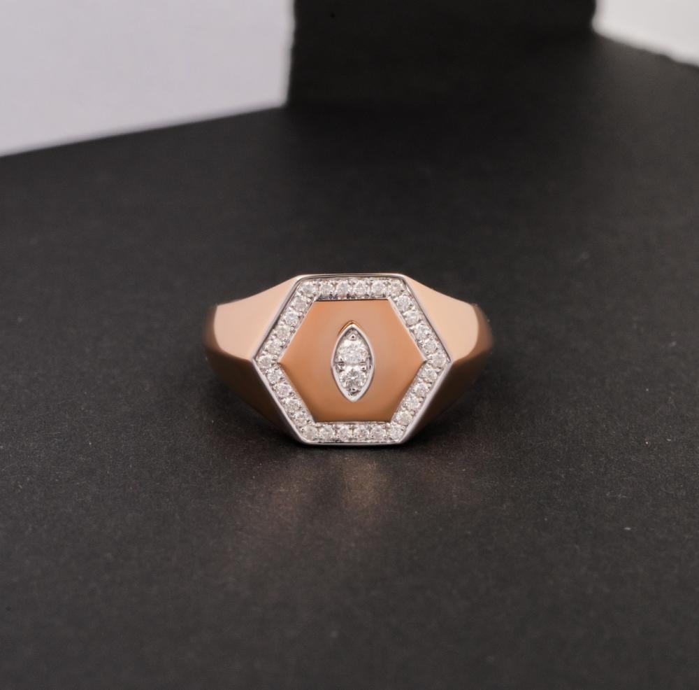 خاتم ذهب وردي عيار 18 مزين بالألماس الابيض