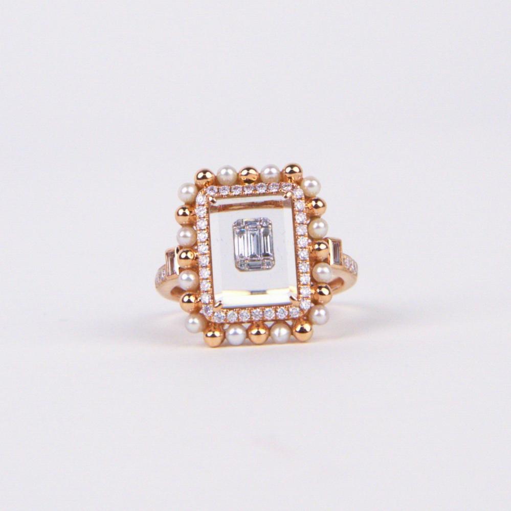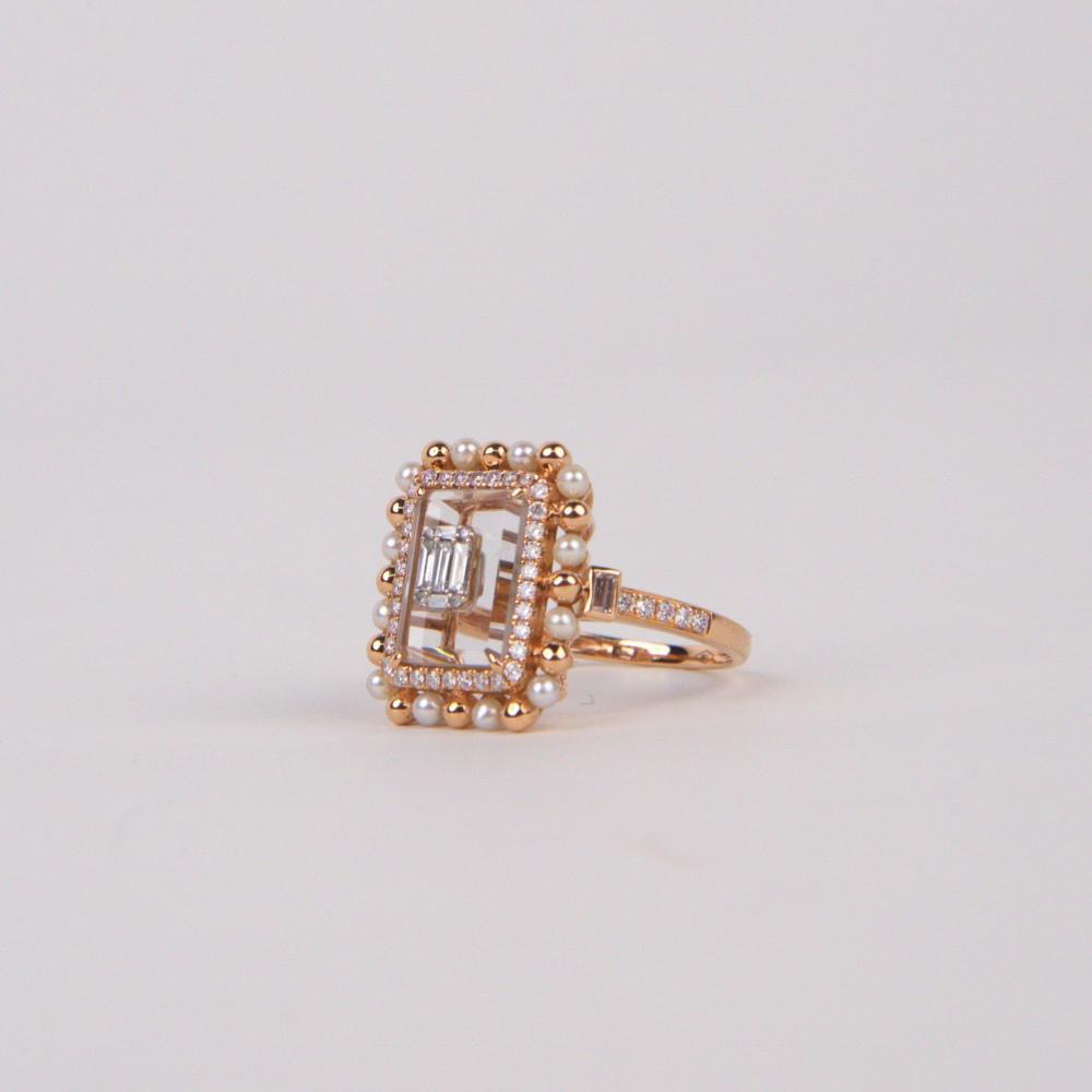 خاتم روز قولد عيار 18 مزين بالألماس الأبيض وحجر الؤلؤ الكريم