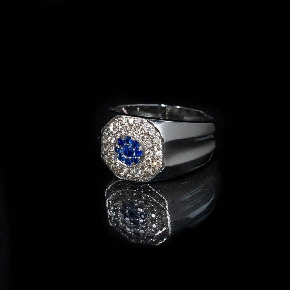 خاتم فضة رجالي مزين بالألماس الأبيض والأحجار الكريمة