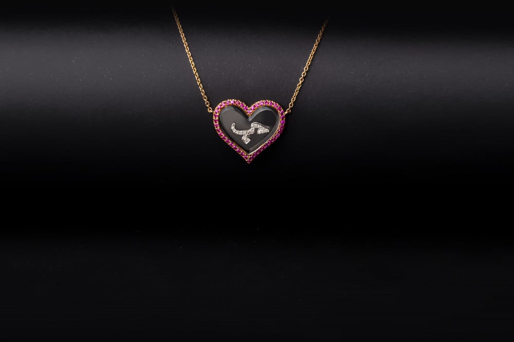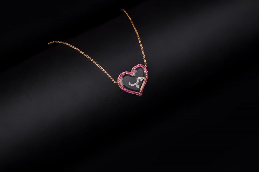 سلسال حُب ذهب عيار 18 على شكل قلب مزين بالالماس الأبيض وحجر الكوارتز الأبيض