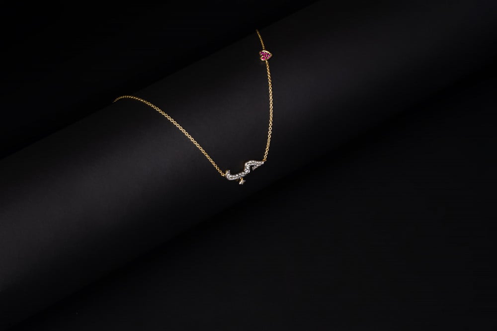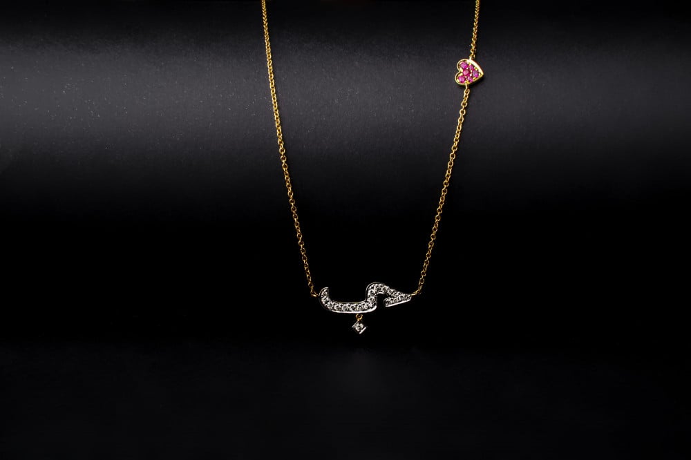 سلسال حُب ذهب عيار 18 مزين بالالماس الأبيض