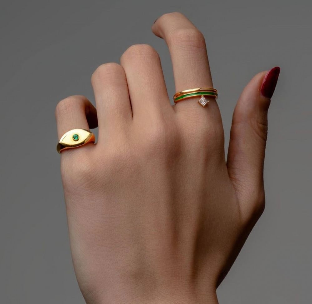 خاتم ذهب عيار 18 مزين بالحجر الكريم